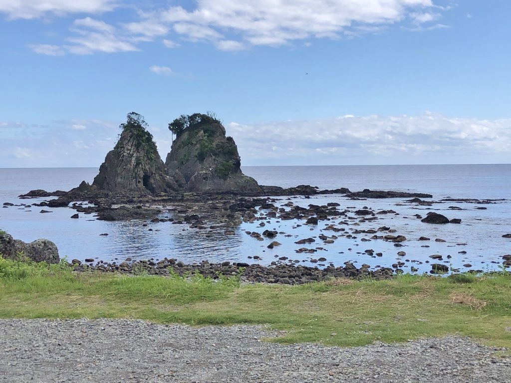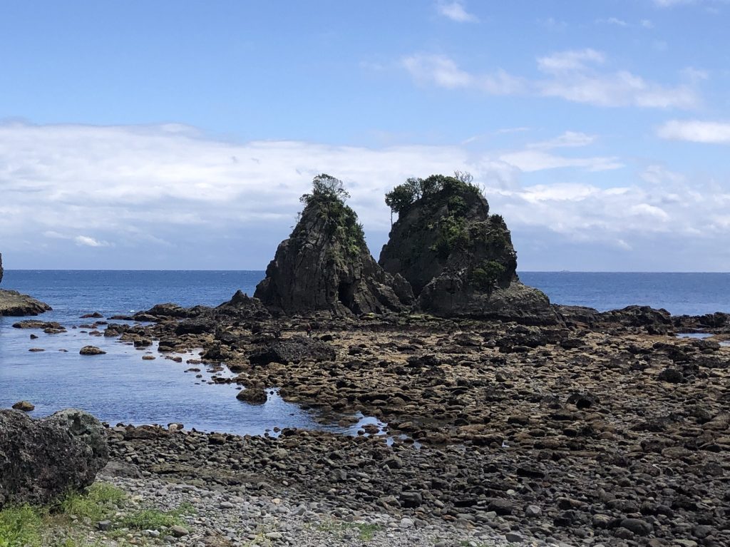 【コース】弓ヶ浜海水浴場駐車場~逢ヶ浜(おうのはま)~雀岩~放射状節理~逢ヶ浜~弓ヶ浜海水浴場駐車場